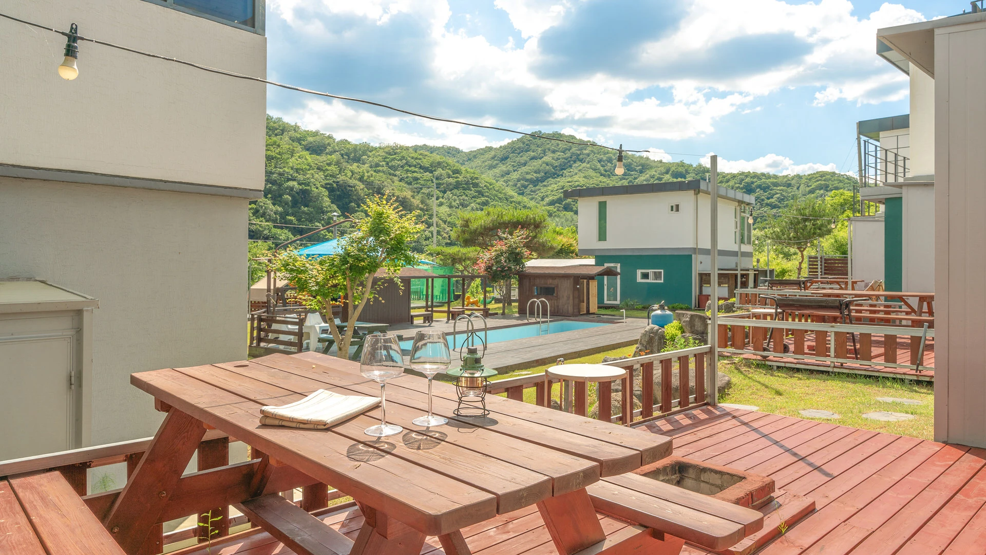 - 집기품목 : 욕실용품, 남녀공용, TV, 금연, 냉장고, 에어컨, 전기밥솥, 취사시설/도구, 전자레인지, 인덕션, 커피포트, 스파/월풀, 개별바비큐, 애견 배변패드, 애견식기류, 테라스, 산전망