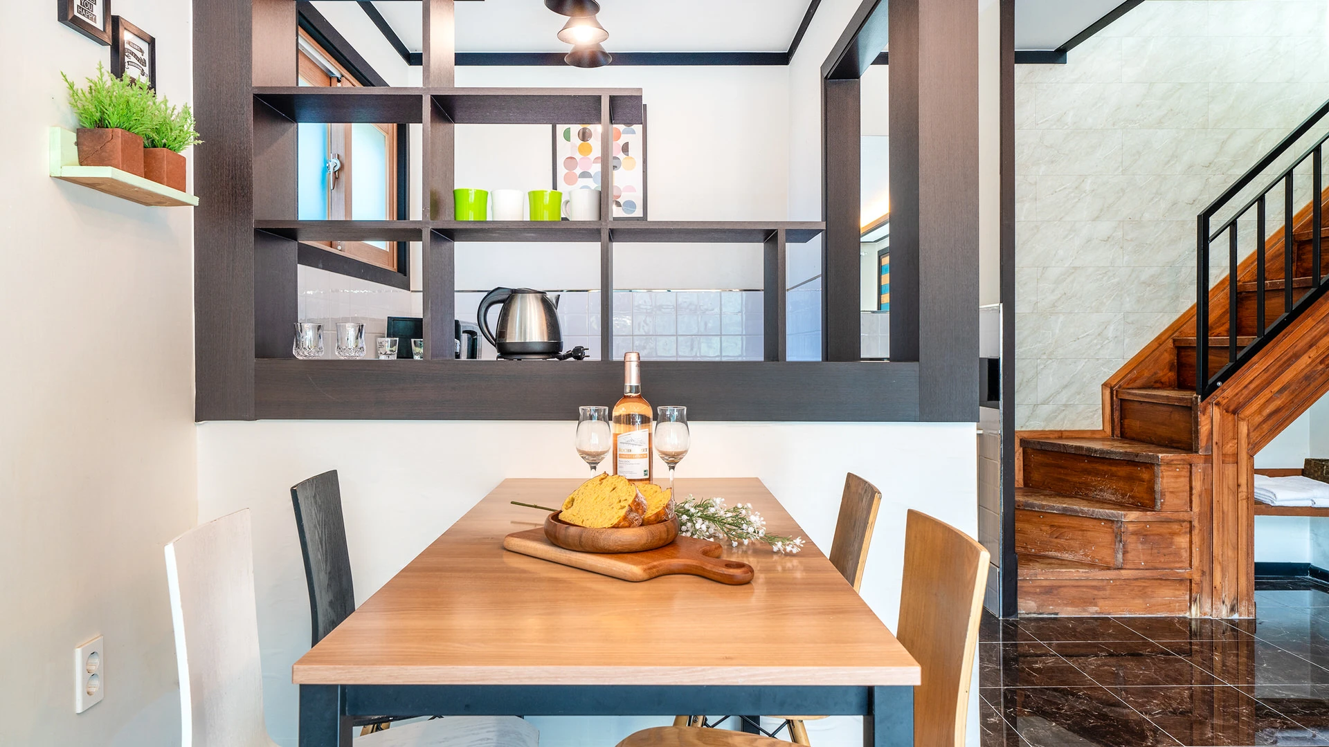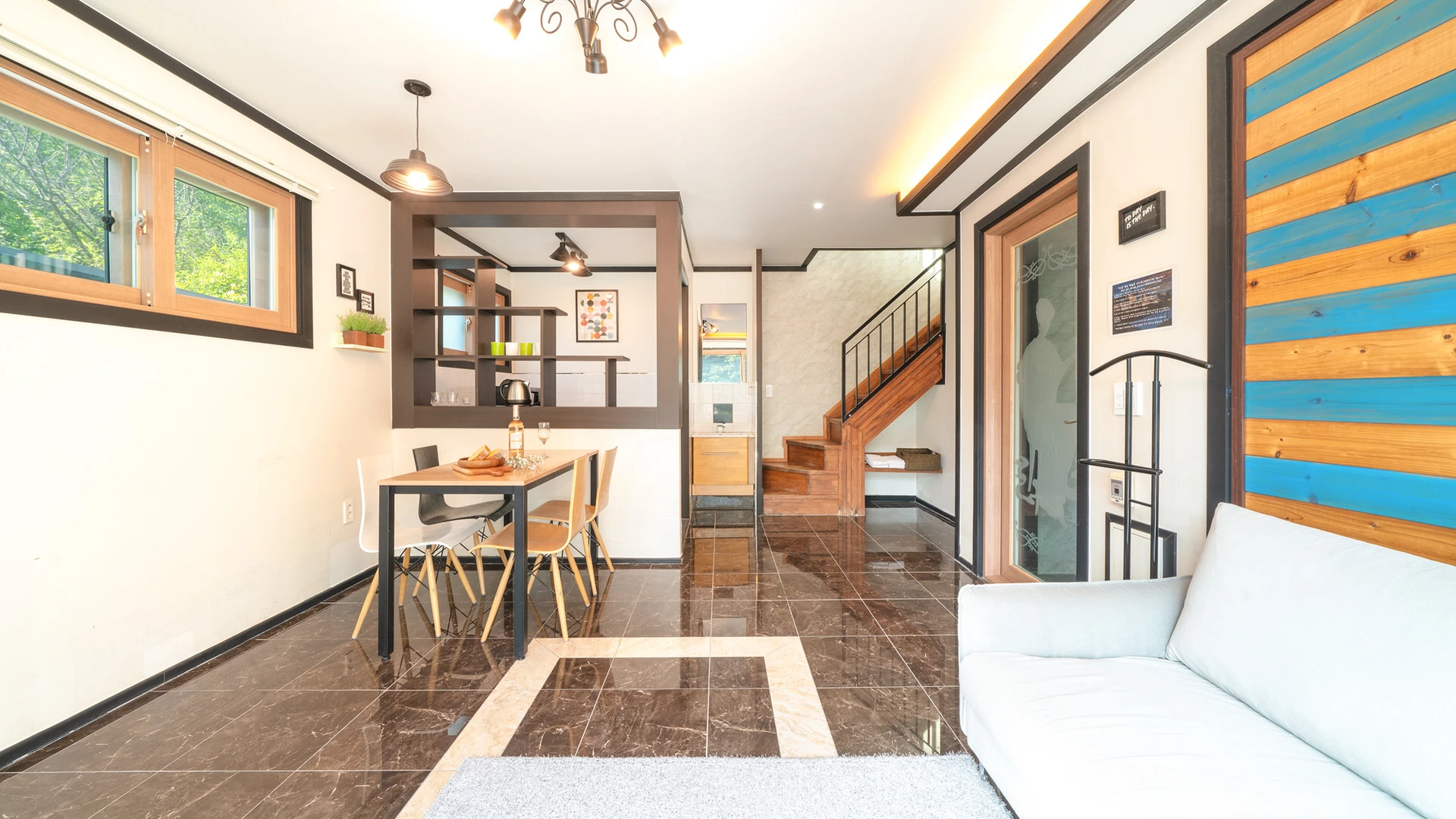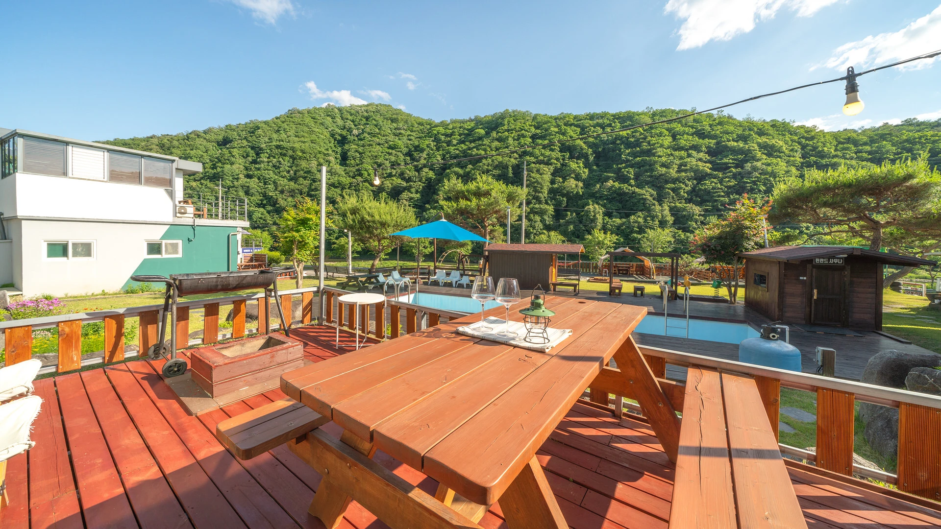 - 집기품목 : 욕실용품, 남녀공용, TV, 금연, 냉장고, 에어컨, 전기밥솥, 취사시설/도구, 전자레인지, 인덕션, 커피포트, 개별바비큐, 애견 배변패드, 애견식기류, 테라스, 산전망