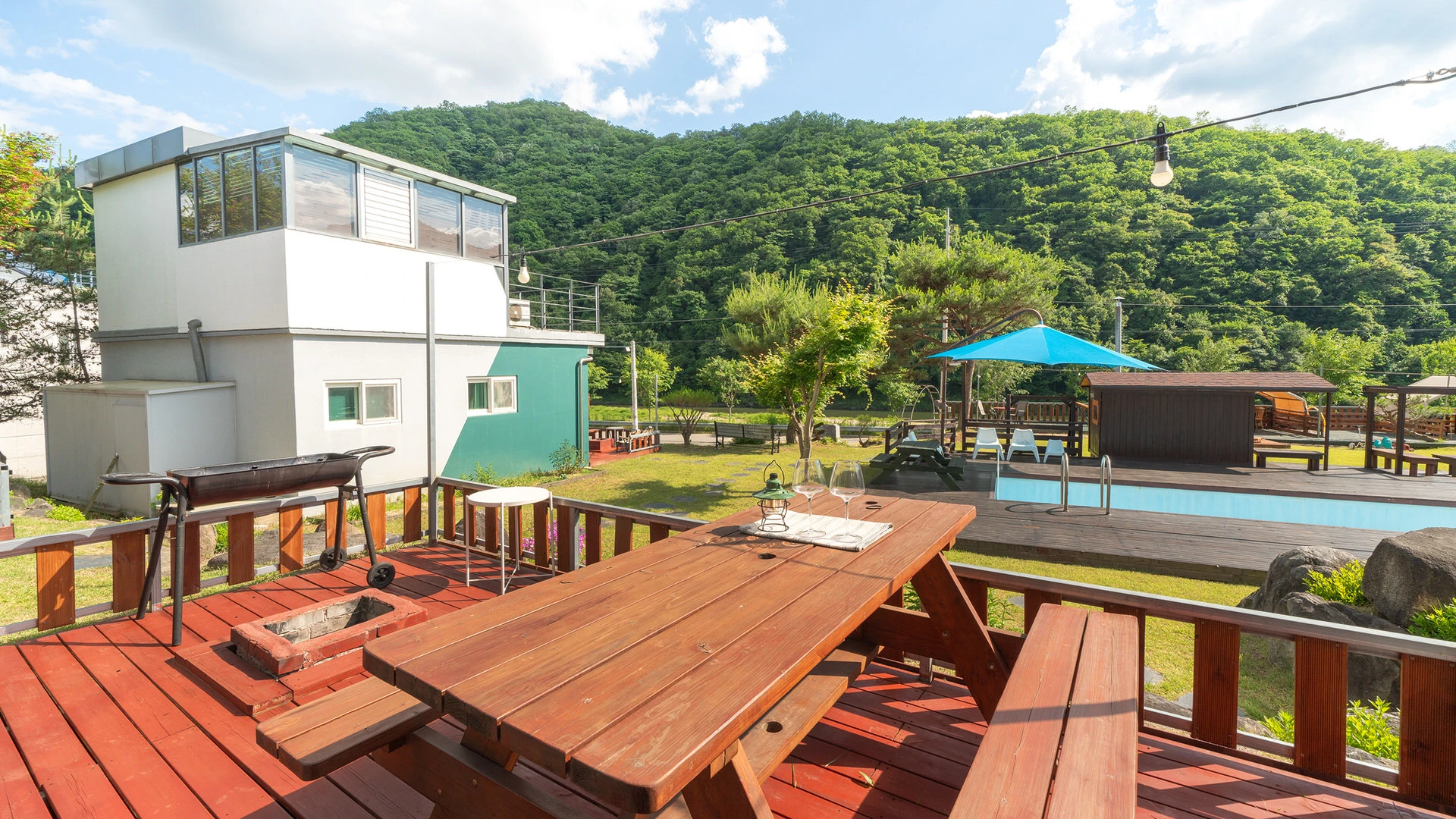 - 집기품목 : 욕실용품, 남녀공용, TV, 금연, 냉장고, 에어컨, 전기밥솥, 취사시설/도구, 전자레인지, 인덕션, 커피포트, 개별바비큐, 테라스, 산전망